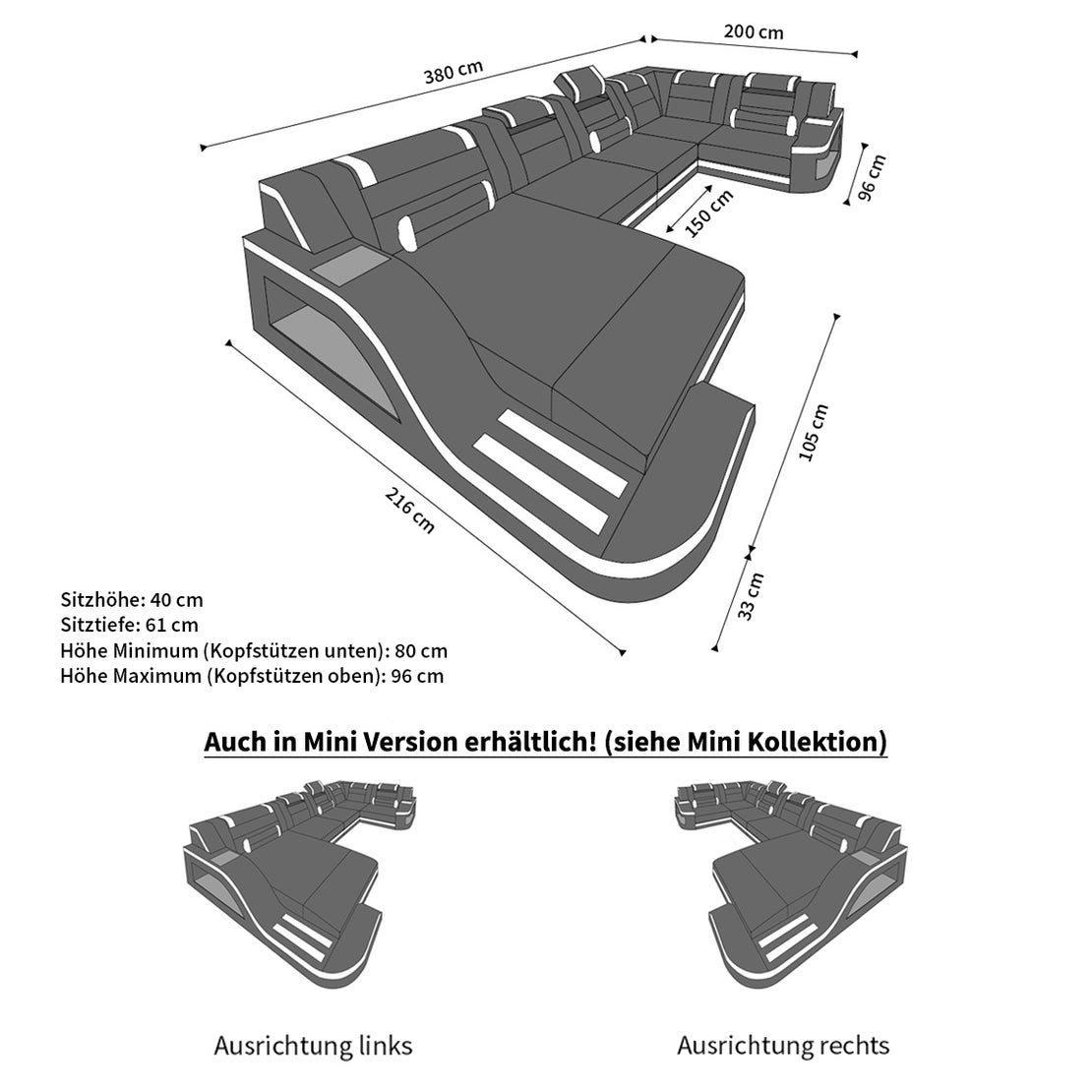 - Optionale Extras wie LED-Beleuchtung oder Schlaffunktion