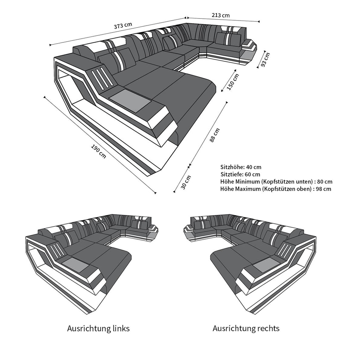 Stoff-Wohnlandschaft Ravenna U-Form LED – Design Sofa mit Komfort